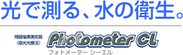 | 残留塩素測定器「フォトメーターCL」は、水中の残留塩素濃度を、DPD試薬を用いた吸光光度法により、0,00~2,00mg/L の範囲で簡単・正確に測定します。飲用水、浴槽水、プール水の衛生管理に活躍します。 |